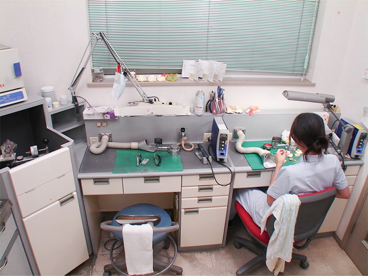 当医院の技工室です。医院内にあるので、患者様からのご要望を反映しやすく、最短でご提示できます。